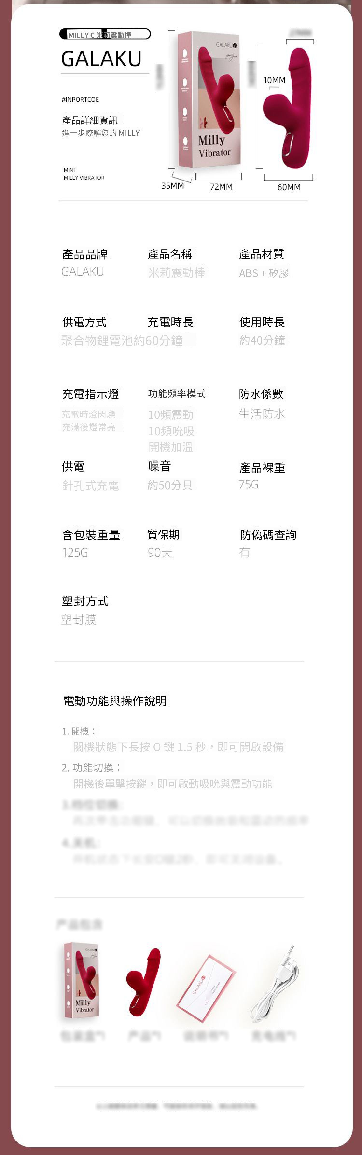 • 產品主要材質:矽膠+ABS