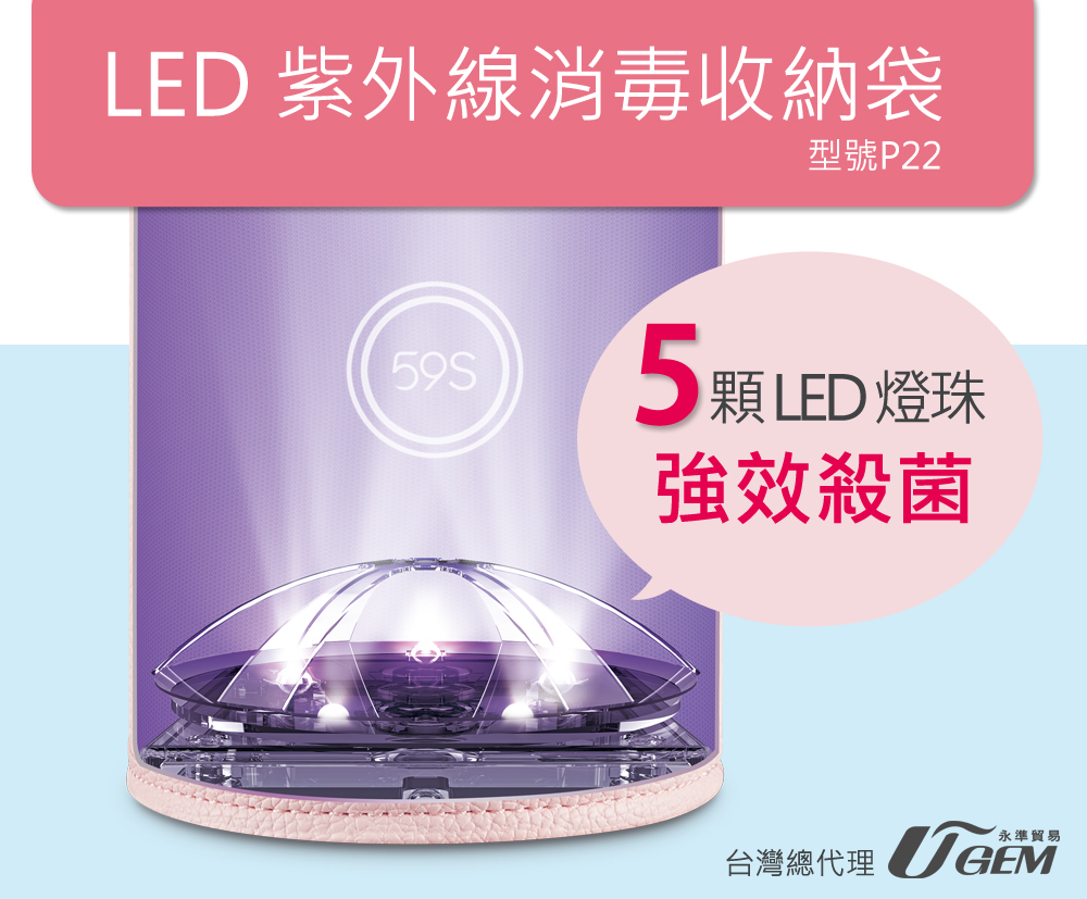 使用 【59S LED紫外線消毒收納袋 】消毒,殺菌率 99.9%,有效遠離病菌。