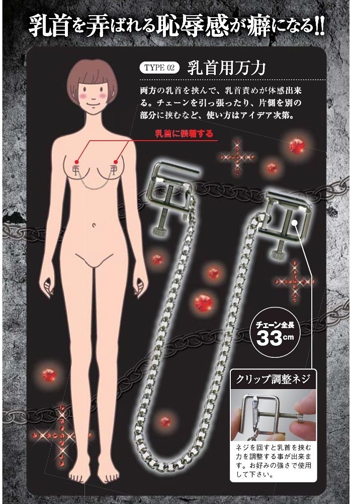 日本A-ONE製造,全長33cm,乳夾可自由調校鬆緊,商合入門級玩家使用。