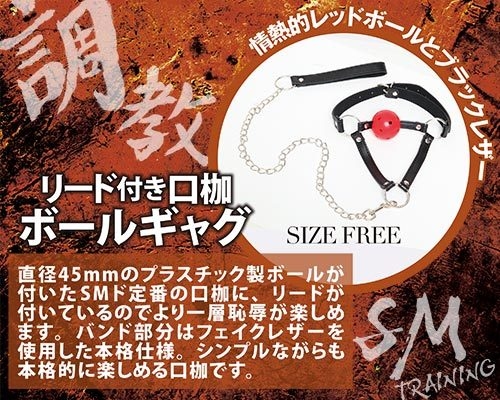 さらなる羞恥プレイを求め、調教がさらに加速!直径45mmのプラスチック製ボールが付いたSMのド定番の口枷に、リードが付いているのでより一層恥辱が楽しめます。バンド部分はフェイクレザーを使用した本格仕様。シンプルながらも本格的に楽しめる口枷です。