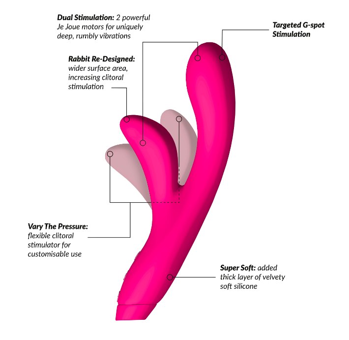 Je Joue經過重新改良後,標誌性的雙頭按摩棒 - Hera!非常軟熟, 外型時尚的雙頭震動器給予你由外而內最有力、深層的震動, 陰蒂和G點區域的同步刺激,令你達至雙重高潮!
