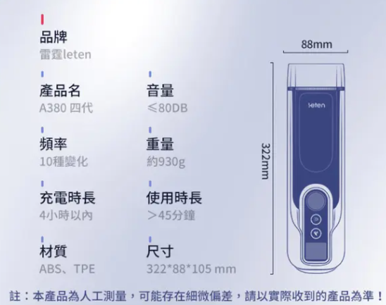 雷霆 LETEN A380 第 4 代 氣壓扭臀搖擺電動飛機杯