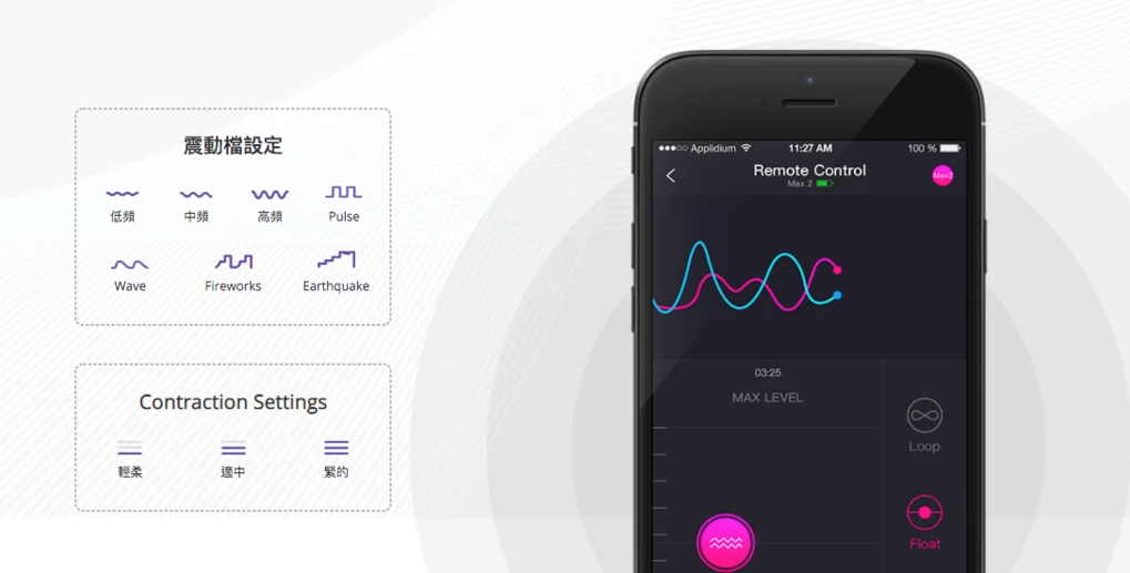3. 你可以在控制介面控制你的"Max 2”的震動強弱和震動及充氣強度