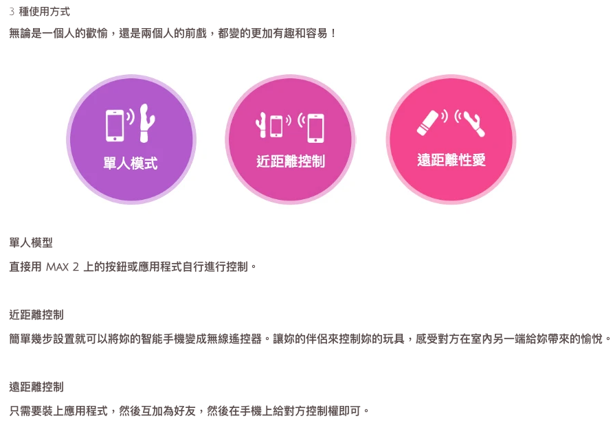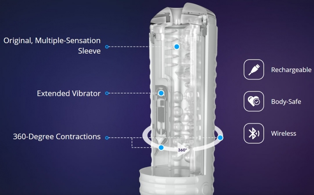 能夠跟伴侶互動的自慰杯,給你在長距離戀愛中與愛人保持激情愛火。Max 2 頂部置有震動器,為龜頭帶來無可媲美的快感體驗。另外,內部加有氣泵,仿造女士陰道因快感而收緊閉合的感覺,令抽插更有真實感。可以智能手機程式藍芽 / 網絡操控,啟動多種模式。程式還包括短訊對話及視像通訊,讓長距離戀愛不再孤單。