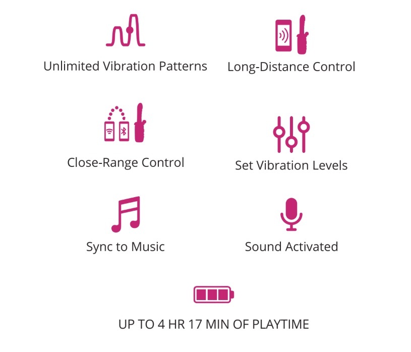 • APP智慧操控 — Lovense Remote App 支援遠程操控、無限模式設定、音樂同步、聲控功能,以及延伸特定模式。