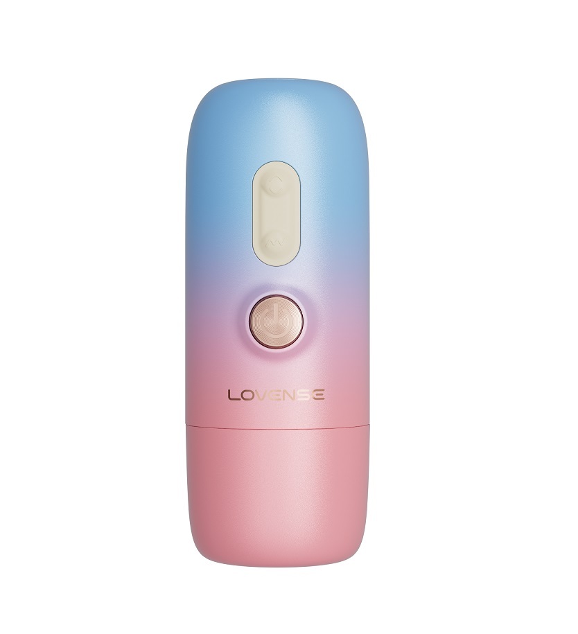 Lovense Spinel APP控推撞抽插加熱式按摩棒 手持/吸啜底盤 - 粉紅配藍色