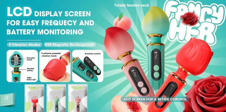 特點: LCD 顯示螢幕可輕鬆監控頻率與電量、9 種震動模式、USB 磁性充電、不含鄰苯二甲酸鹽。